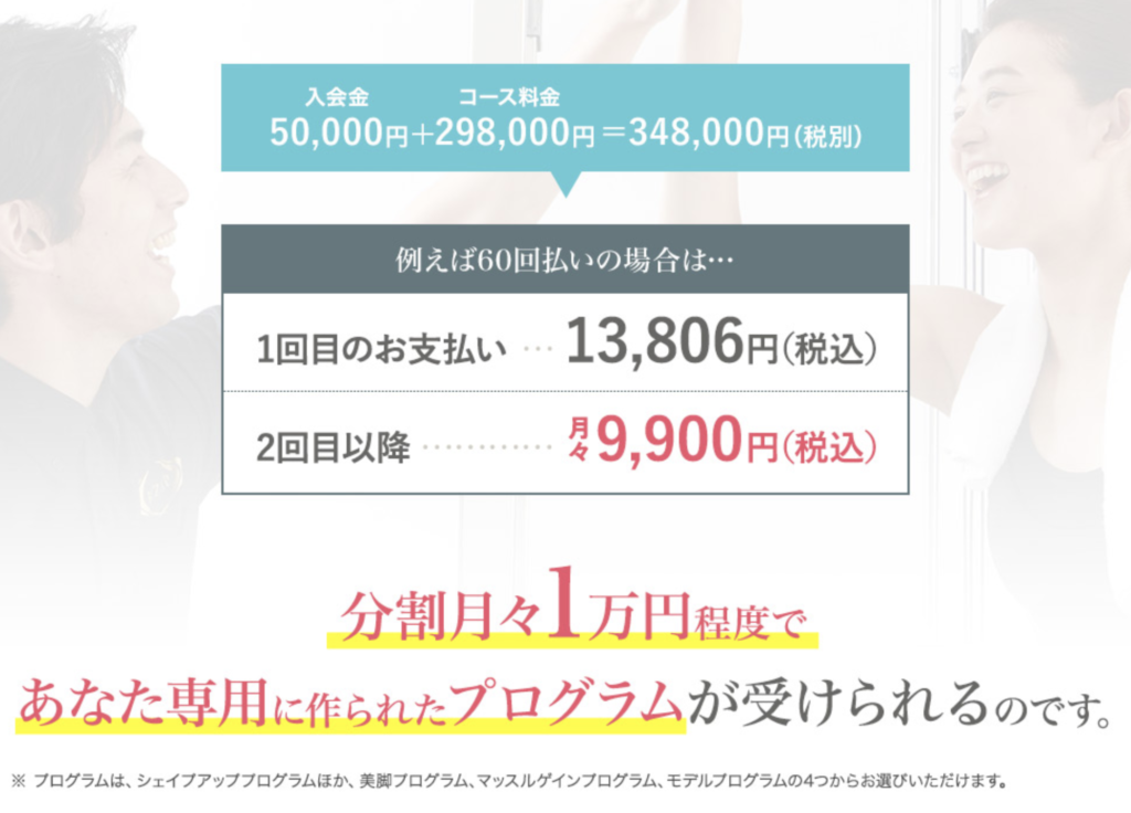 ライザップでは、最大60回払いの分割払いに対応