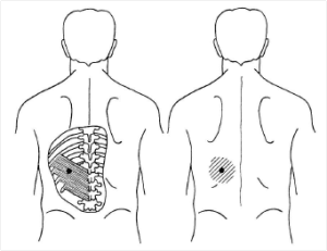 腎臓性の腰痛を確認する時に、肋骨の下側を叩いて痛み出るかを確認する検査があるのですが、この叩く位置が丁度先ほど説明した下後鋸筋の位置だからです。