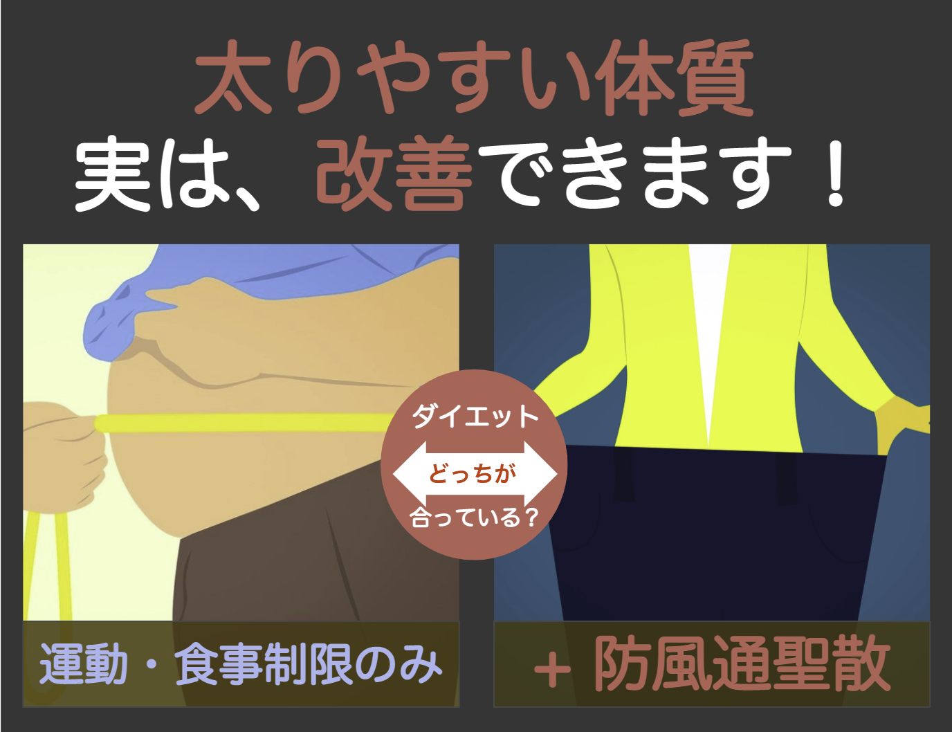 まずは、「防風通聖散」が、どんなお悩みを解決できる漢方かと言うと、