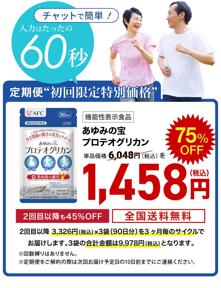 過度な糖質(果物や、煎餅などの菓子類)を避けて、タンパク質はしっかりとるといった食事改善をベースに、不足しがちなビタミン類や軟骨成分はサプリとして栄養補給することがでできます。