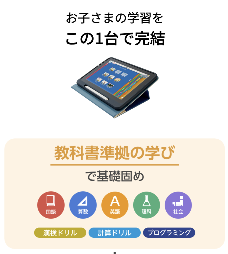 スマイルゼミは、タブレット1台で教科書に沿った学習ができる家庭学習教材です。
