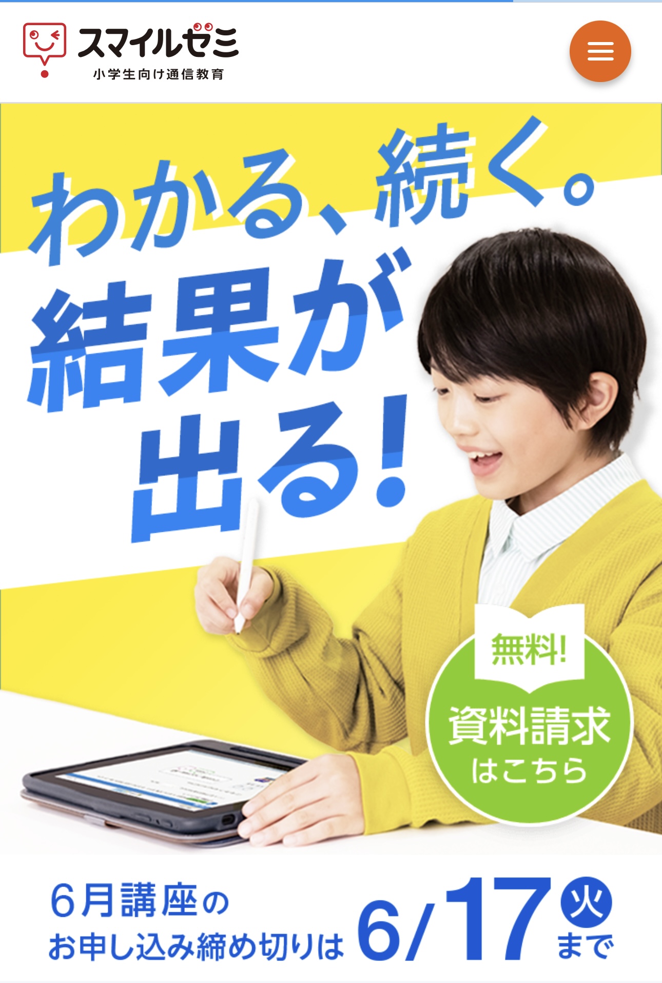 紙の教材ではなく、専用の「スマイルゼミタブレット」を使用。